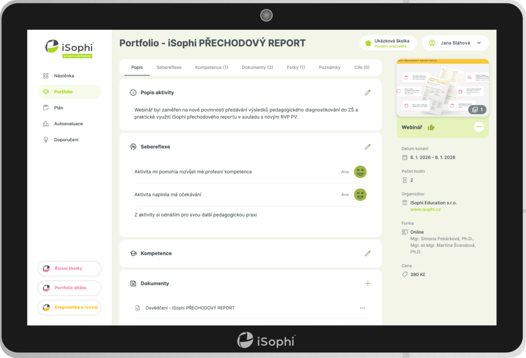 O konceptu iSophi Portfolia dítěte se dozvíte více na specializovaných webinářích zde.