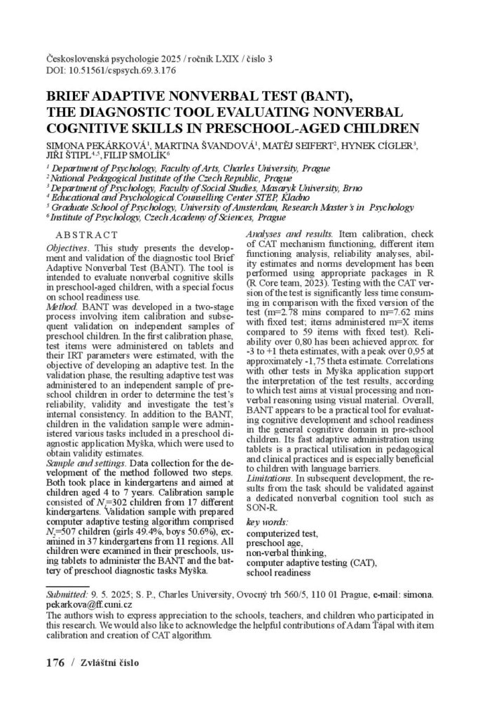 (Československá psychologie 2025 / ročník LXIX / číslo 3)